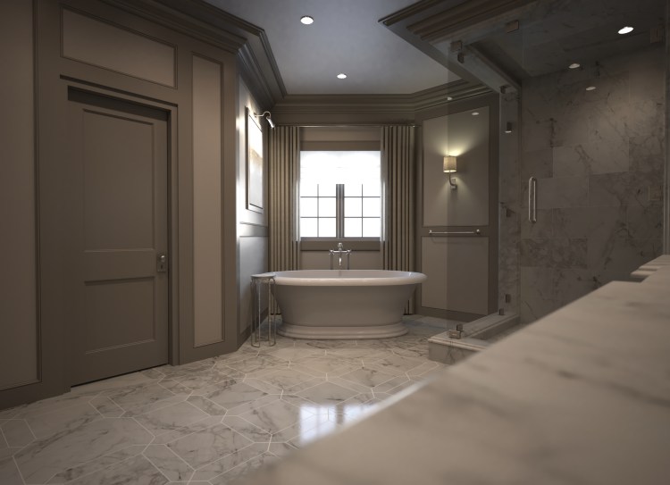 The things we knew we wanted personally took high priority, but we had to make sure those things were what most people generally desire. We wanted a soaking tub that doesn’t hold as much water as the 60 gallon tub you see to your right. The shower we had was so small for the size of the bathroom so we decided to make this area larger by extending out the shower pan. What would really define this bathroom and make it truly special would be adding architectural character so we planned all of the cabinetry to be inset paneled, a tall crown moulding that will help enhance the height of the room, and each wall would have interesting paneled woodwork.